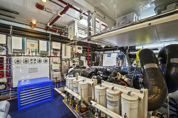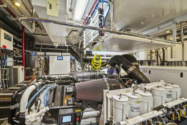 - Zero speed fin stabilization, hydraulic bow and stern thrusters, and dual water makers