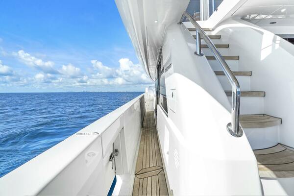 - Teak steps on flybridge stairway