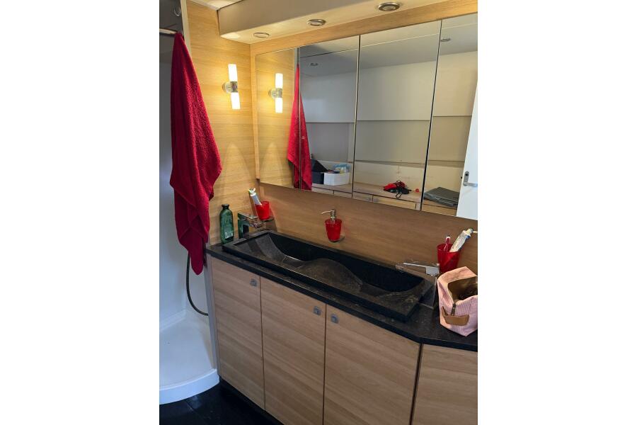 Dean Catamarans 5000 Manila SpiritCurrent Location: Panama Shelter Bay MarinaA Cherished Home, Not a Charter BoatThe Pinnacle of Turnkey ReadinessManila Spirit represents a truly exceptional offering: the legendary Dean 5000, known as the precursor to the award-winning Xquisite X5. She is a robust, ocean-ready vessel built to the highest Category A - Altamar (Ocean) standard , combining high performance with the safety and spaciousness required for world cruising.This catamaran is reluctantly offered for sale because the owners must change their long-term onboard living plans for health reasons. Consequently, Manila Spirit is maintained in immaculate condition with an extraordinary list of high-end, nearly new equipment a genuine turnkey opportunity where all systems are ready for immediate departure.STANDOUT FEATURES1. Unmatched Power and Energy IndependenceThis is a vessel engineered for true off-grid freedom: Massive Battery Bank: New (2024) Mastervolt 1000 Ah Gel house battery bank provides superior endurance. Hybrid Charging: Power is constantly managed by a Silent Wind Generator (new 2018) and a huge solar array totaling 1670 Watts from three separate installations (new 20172021). On-Demand Water: A Sea-R.O. 220 V water maker (new 2024) guarantees fresh water for unlimited cruising. Redundant Propulsion: Twin 80 HP Yanmar Commonrail Marine Diesels (new 2017, serviced 2024) with folding propellers and a Maxpower bow thruster (new 2024 battery/charger).2. Exceptional Blue-Water Capability & Ease of SailDesigned for short-handed sailing, MAISIE boasts a brand-new sail inventory and top-tier deck gear: New Ullman Sail Inventory (2024): This includes a new Mainsail (1076 sq ft), a new Reacher (968 sq ft on an electric furler), and a new Jib (452 sq ft on a 2nd electric furler). An Asymmetrical Spinnaker (1722 sq ft) provides downwind speed. Effortless Handling: Equipped with 2 electric Harken winches and 2 Selden electric furlers, all sail handling can be managed with minimal effort. Hydro Upgrades: Hydraulic steering system upgrades (new 2019) ensure precise control and reliability.3. State-of-the-Art Navigation and ConnectivityStay connected, safe, and aware with professional-grade electronics, much of it recently installed: Global Connectivity: Features Starlink (new 09/2024) , KVH V3-HTS MiniVSAT (new 2021) , and an ICOM SSB radio (new 2021). Advanced Navigation Suite: Full Furuno TZT14 14 plotter (new 2018) , Furuno HD Radar DRS4NXT with Doppler receiver (new 2018) , and dual autopilot systems. Visibility & Safety: Includes a forward echo sounder (pre-installed 2018) , AIS (new 2016) , and a Viking 8 man life raft (serviced 2024).4. Luxurious Owner's Version InteriorThe unique owner's layout offers vast, comfortable living quarters and a dedicated workshop space. Salon Comfort: Air conditioning (40,000 BTU total) and ambient LED strip lighting create a refined atmosphere. Gourmet Galley: A fully equipped galley includes a SMEG dishwasher , SMEG washer/dryer , separate Vitrifrigo fridges/freezers, and an extra freezer in the hull. Entertainment & Finesse: Includes a Custom Kawai MP10 electric piano , 43 inch Samsung LED TV and a dedicated workshop with basic tools.FULL INVENTORY HIGHLIGHTS Antifouling: Trinidad hard antifouling (3 coats, last painted March 2024). Deck: Extended bathing platforms (new 2019) , high-power SeaBlaze X2 underwater lights (new 2019). Water Toys: Aluminum-hull tender (3D Tender UL 310) with both a Tohatsu 9.9 hp motor and a Torqueedo electric motor. Spares: An extensive inventory of spare parts for all critical systems, including engines, generator, water maker, and rigging.FULL SPEC SHEETBuilderDean CatamaransModel5000Year Built2012ConditionExellent conditionLength Overall (LOA)15.39 mBeam8.00 mDraft1.50 mWeight/Displacement19,000 kgMaterialGlass Reinforced Plastic (GRP)Design CategoryA - OceanAccommodation3 Cabins, 3 Berths, 3 Heads (Owner's Version Layout )ENGINE AND PROPULSION Engines: 2 Yanmar 4JH80 Commonrail Marine Diesel Power: 280 HP/59 kW (approx. 1700 hours History: New in 2017, fully serviced in 2024, with a 250h service scheduled for 2025. Drives: SD-60 sail drives (new 2017) Propellers: SPW Varioprop DF112 4-bladed folding propellers (new 2016) Alternators: 2 Yanmar 90 A standard and 2 Yanmar 110 A High Output (new 2017) Bow Thruster: Maxpower 60 with 24 V Gel battery bank (new 2024) and 24 V charger (new 2024) Hydraulic Steering Upgrade: Electro-hydraulic autopilot pump EHPE12R, hydraulic steering cylinders MTP175, steering pump HTP42R (new 2019) Other: Soundproofing in engine rooms (new 2023) , Fuel transfer pump with Parker filters.SAILS AND RIGGING Mainsail: Ullman Sails 100 m2 (new 2024) Reacher: 90 m2 on electric furler (new 2024) Jib: 42 m2 on 2nd electric furler (new 2024) Asymmetrical Spinnaker: 160 m2 with Top down furler (new 2020) Mast: Custom made by Southern Spars / Cape Town Winches: 2 Harken electric winches , Manuel Harken winch foredeck , 2 Selden electric furlers for jib and reacher sails (new 2017).ELECTRICAL SYSTEM AND POWER House Batteries: Mastervolt 5200 Ah 12 V Gel, totaling 1000 Ah (new 2024) Starting Batteries: 2110 Ah AGM (new 2024) Generator: Fischer Panda 8000i 8 kW - 220 V - with sound insulation shell (serviced 2025) Solar Power: 6145 W on salon coach roof (recessed, hinged, and adjustable) (new 2020) 2300 W on dinghy supports (new 2017) 2100 W on coach roof in front of helm (new 2021) Solar Chargers: Mastervolt 60 A MPPT (new 2018) , Victronic 40 A and 30 A MPPT (new 2017) Wind Generator: Silent Wind Generator 400 W (new 2018) Inverter/Charger: Mastervolt Combi Ultra 12 V/3000 W/150 (new 2017) System Management: Mastervolt DC heavy current distribution and shunt connected to Masterbus network (new 2018) , Mastervolt EasyView5 control touchscreen at the nav station (new 2019).NAVIGATION AND ELECTRONICS Plotter/Radar: Furuno Touch TZT14 14 (new 2018) , Furuno HD Radar DRS4NXT with Doppler receiver (new 2018) Auto